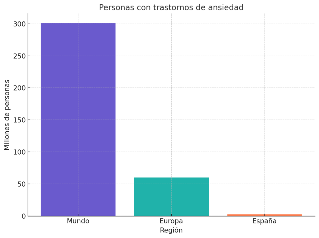 Según la Organización Mundial de la Salud (OMS, 2023), más de 301 millones de personas en el mundo viven con un trastorno de ansiedad. Esto convierte a la ansiedad en uno de los problemas de salud mental más frecuentes a nivel global.